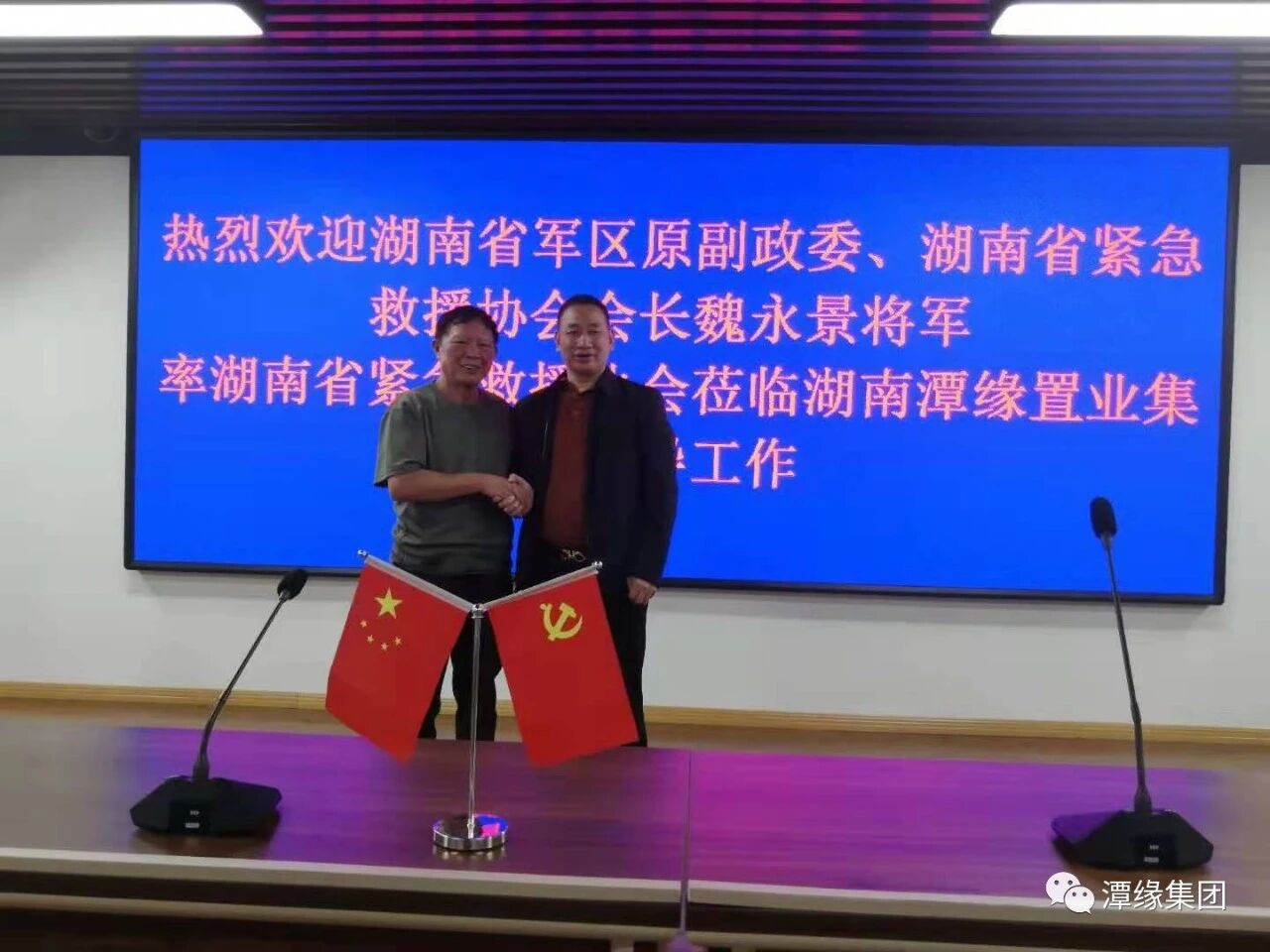 2020年 12 月 8日上午十点,湖南潭缘置业集团有限公司董事长杨正华先生邀请了湖南省军区原副政委、湖南省紧急救援协会会长魏永景将军及湖南省紧急救援协会相关领导莅临潭缘集团参观指导工作。
